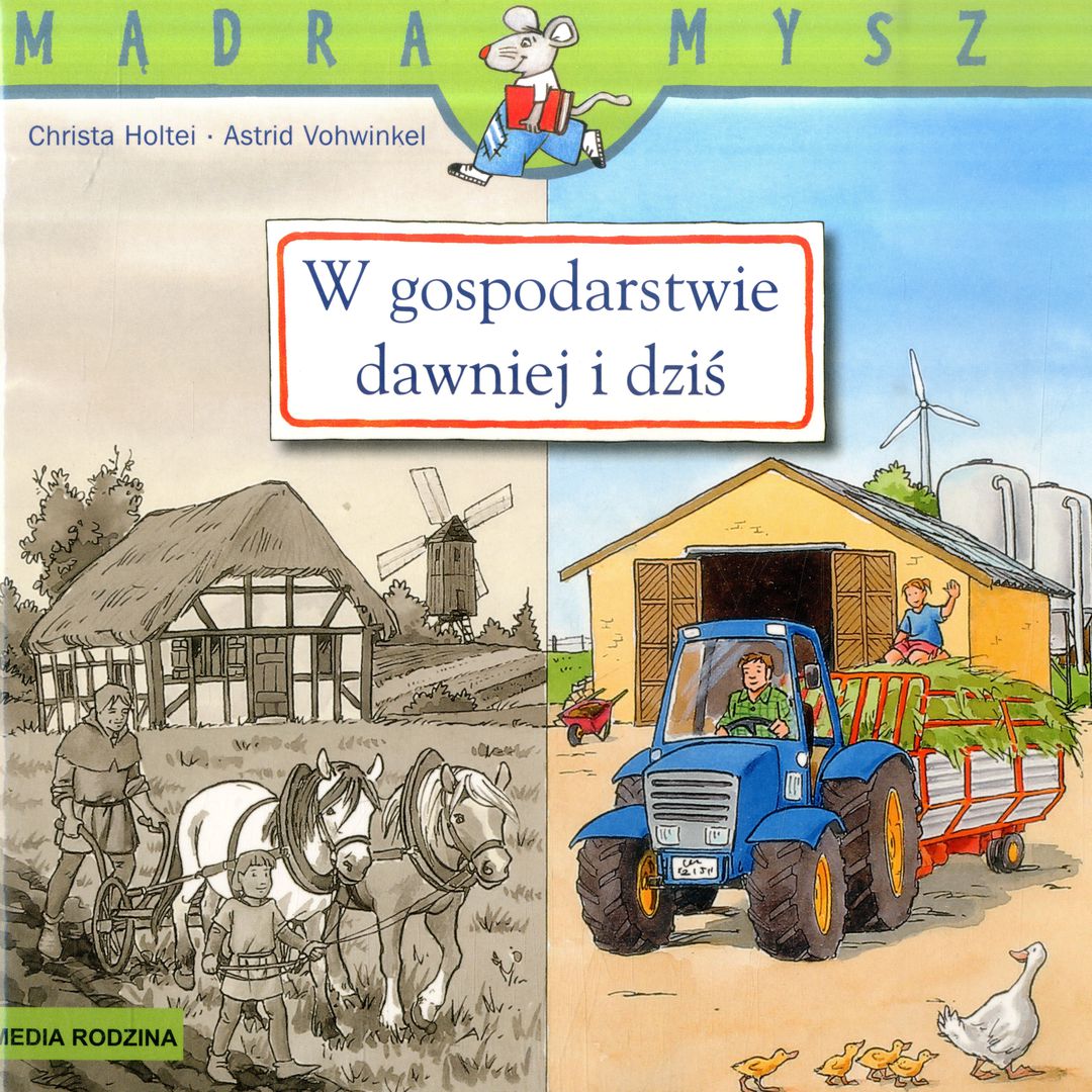 Kolejna książka w serii „Mądra mysz”. Tym razem porównano zwyczaje w gospodarstwie – jak kiedyś zajmowano się uprawą roślin i zbóż? Gdzie trzymano zwierzęta? Z jakich narzędzi korzystali nasi przodkowie? Pasjonująca lektura dla wszystkich młodych czytelników, którzy na dwunastu rozkładanych stronach odkryją wiele nowych faktów z bardziej i mniej odległych czasów.